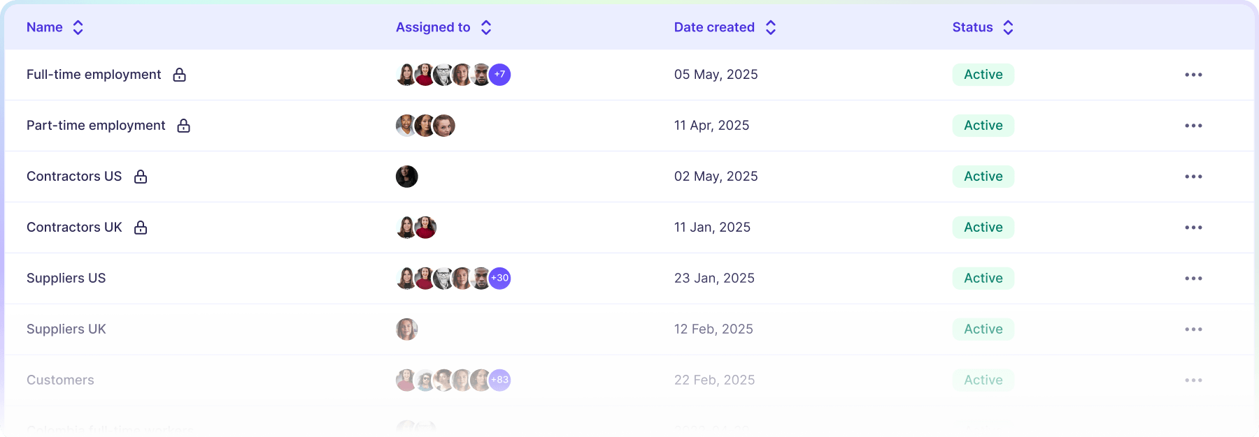 Assign custom profiles and access rights to each user type, to control what your people can see or do.