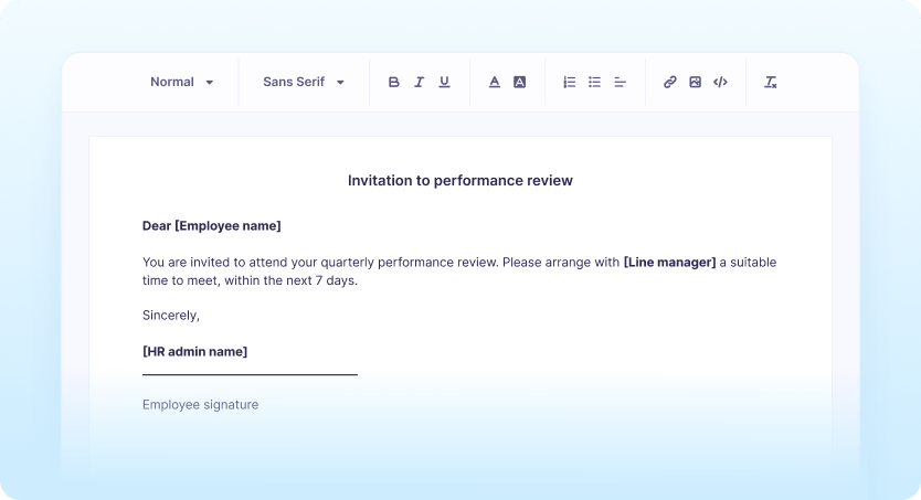 With a single tap or click, personalise any letter or contract using info from employee records, like name, job title, salary or length of service.