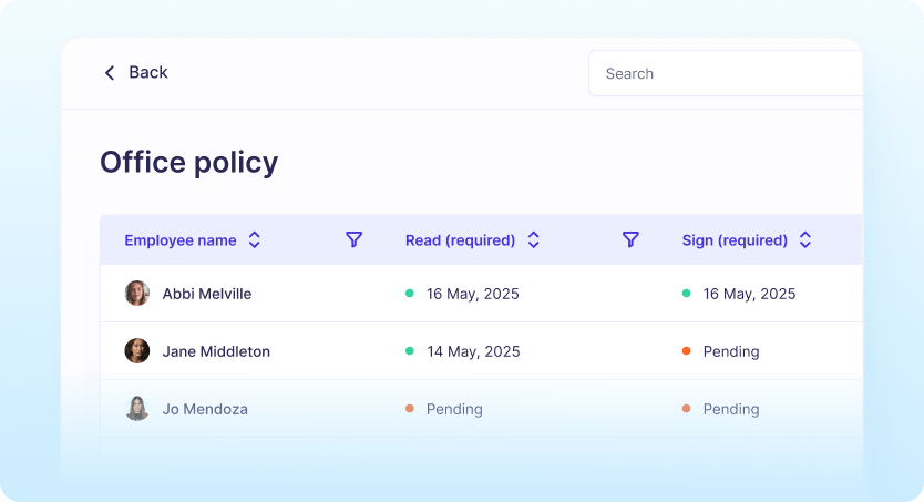 SenseHR shows you who has received, who has read, and who has signed your different documents - helping you prove your compliance.