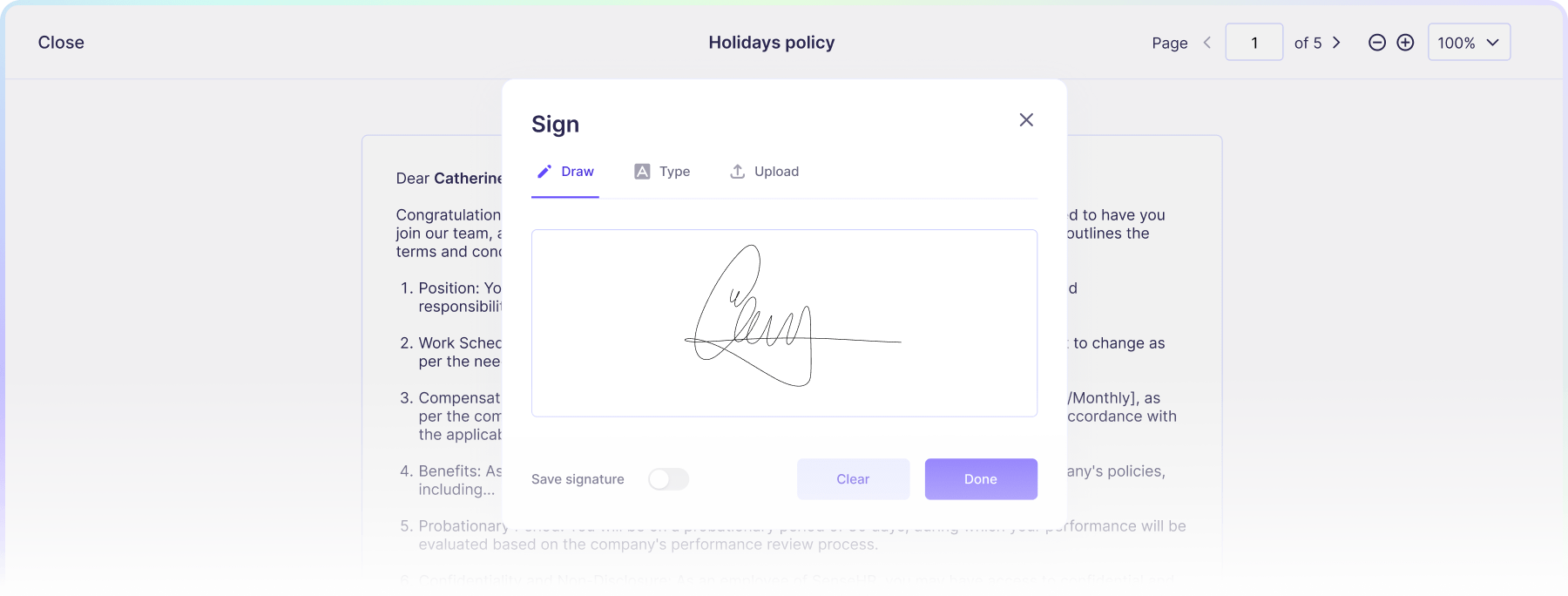 Create, manage, and track HR documents with AI-powered speed and precision.