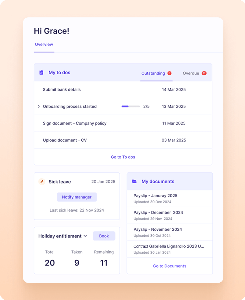 Sense HR delivers enterprise-grade solutions powered by AI, including the ability to customise fields and dashboards, as well as automate complex HR processes. However, because Sense HR is a part of the Sense Workplace platform, enterprises can also take advantage of other advanced workplace tools, including indoor location intelligence for to support more efficient operations, as well as an integrated Applicant Tracking System and an end-to-end time and attendance solution, which includes a selection of “plug and play” time clocks for recording timesheet data that shares directly with your HR system.