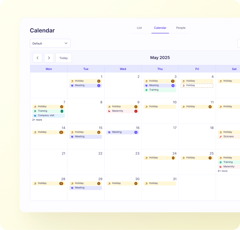 View all holidays, events and leave, in your central planner. See who is where, what’s happening next, and which days will be your busiest.