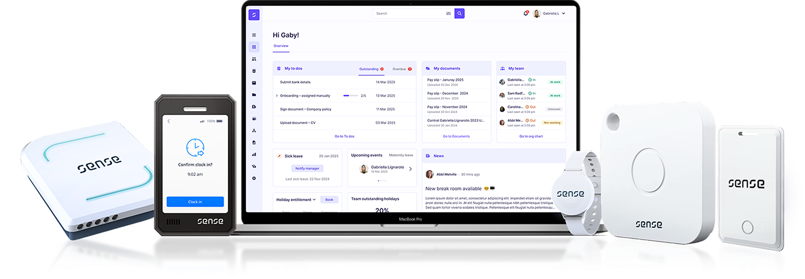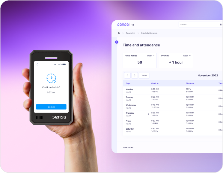 Sense does more than help you store and manage your HR data. As well as all the core HR functionality, Sense offers modern hardware that lets clients automate their most boring and time- consuming HR processes, such as clocking in and out.